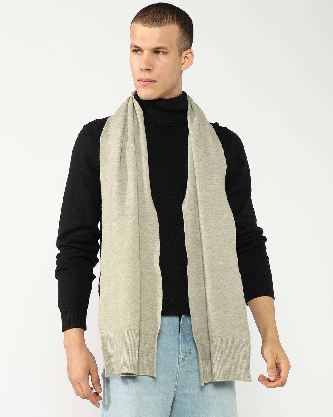 Acrylic Blend Textured Grey Melange Scarf