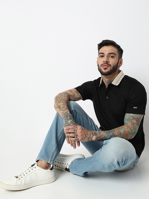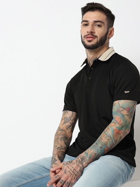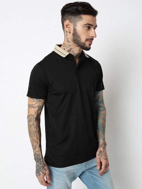 Slim Fit Half Sleeve Solid Tencil Lycra Polo T-Shirt