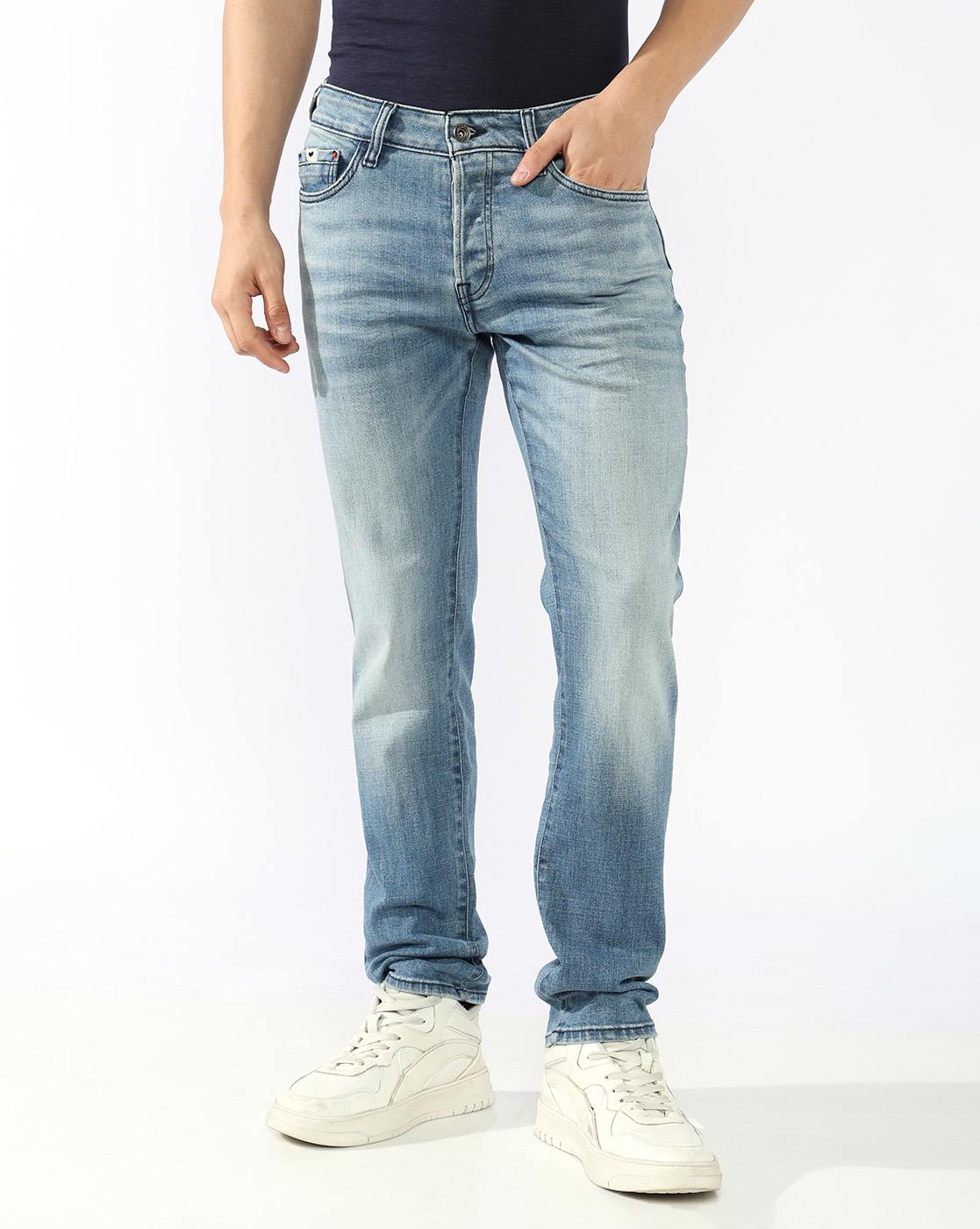 Albert Slim Fit Mid Rise Heavy Wash Light Blue Jeans has been added to your wishlist.