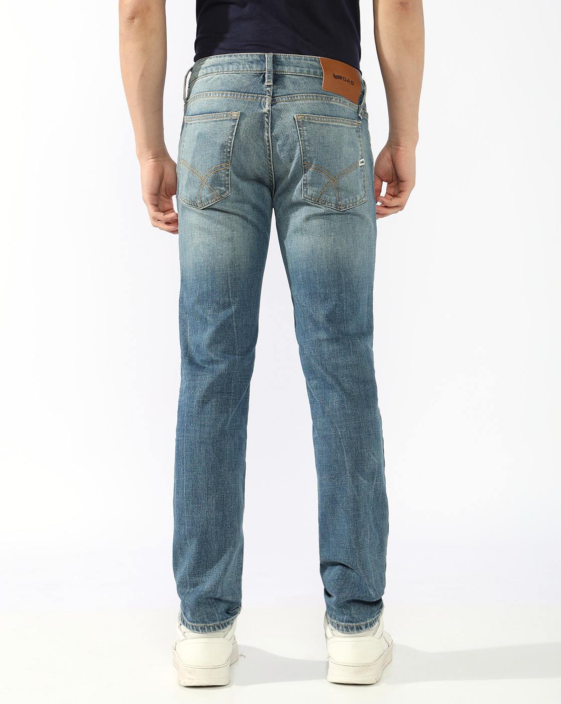 Albert Slim Fit Mid Rise Mid Distress Light Wash Blue Jeans