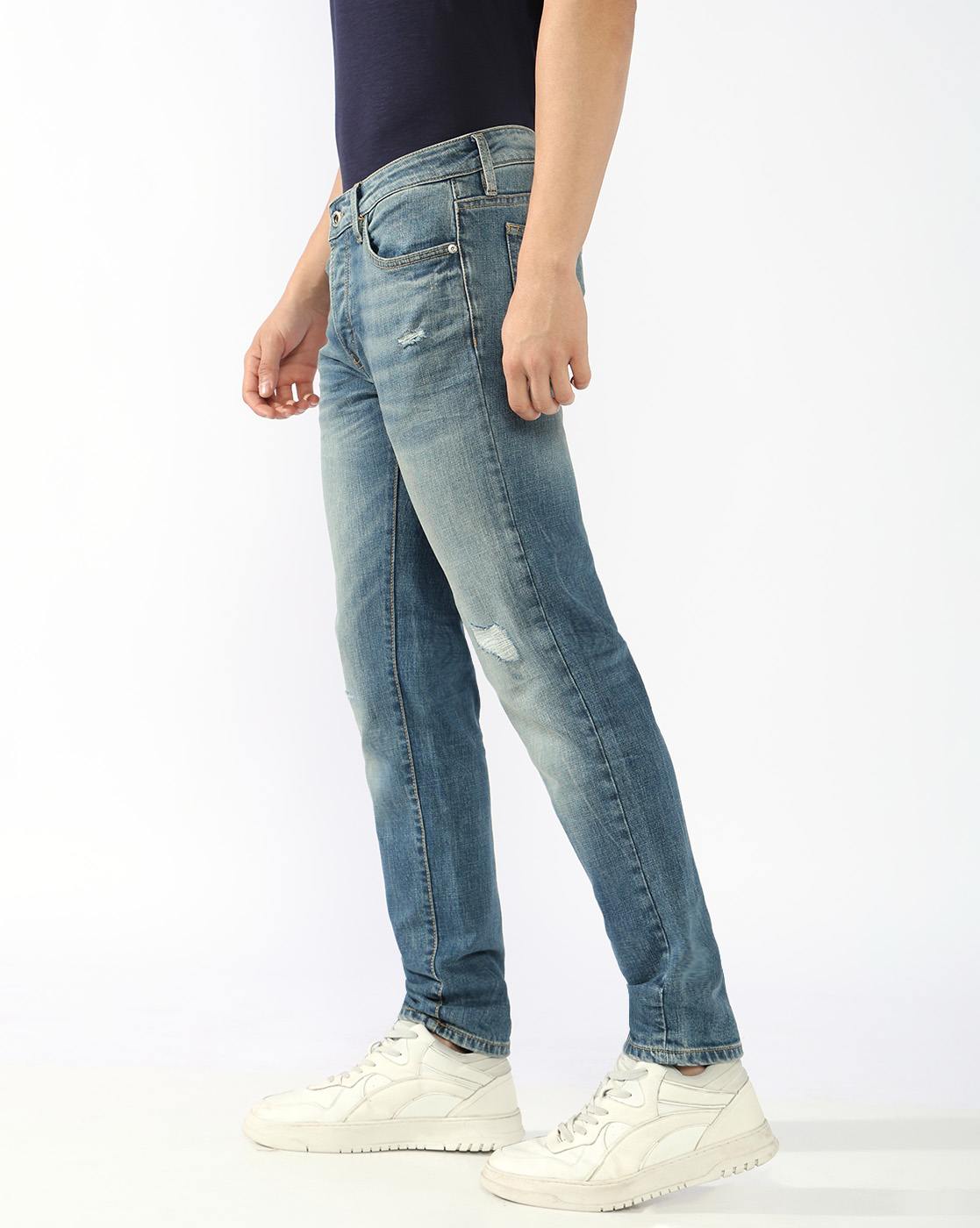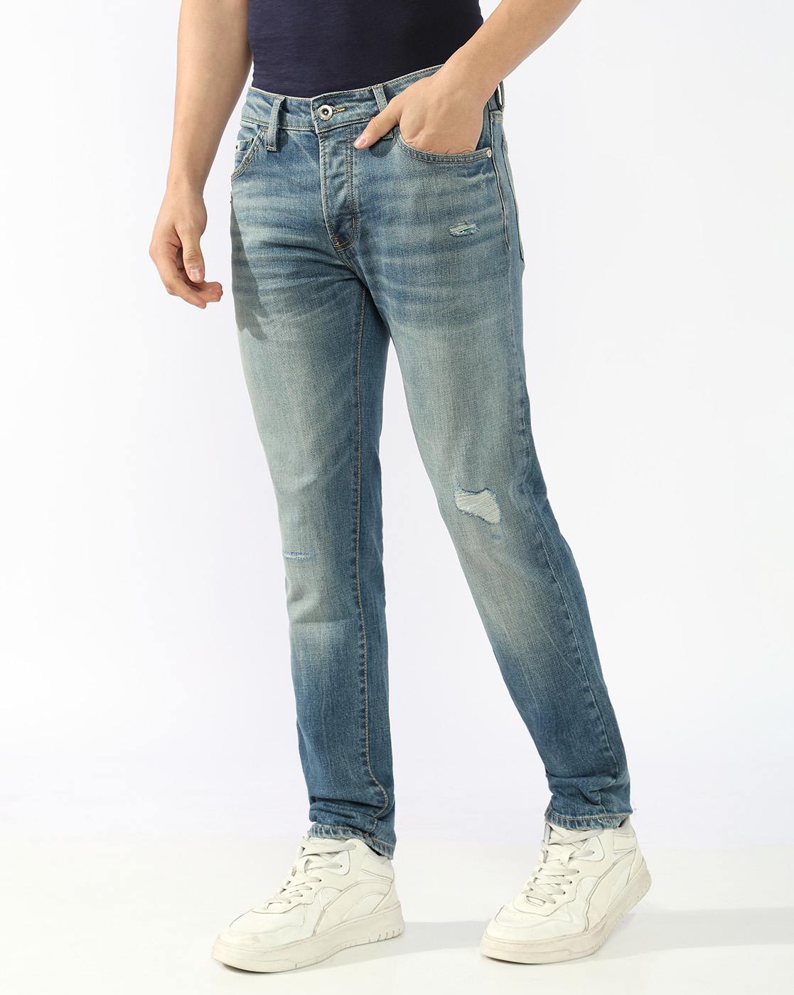 Albert Slim Fit Mid Rise Mid Distress Light Wash Blue Jeans has been added to your wishlist.