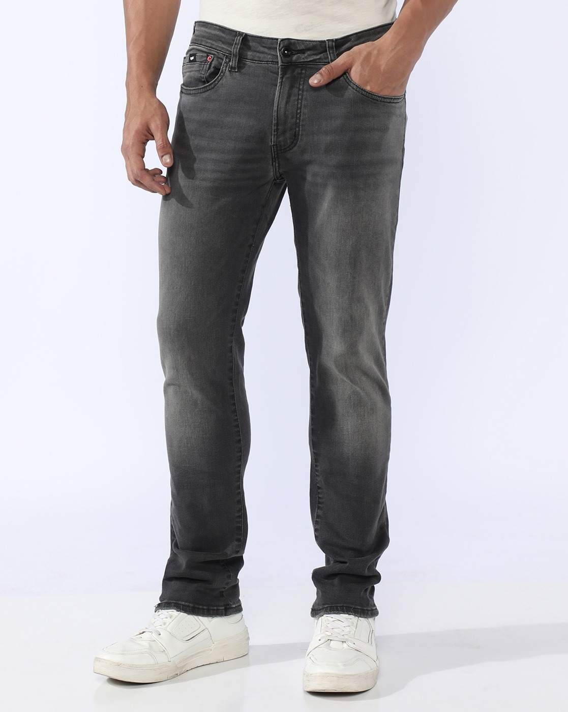 Albert Slim Fit Mid Rise Mid Wash Grey Jeans has been added to your wishlist.