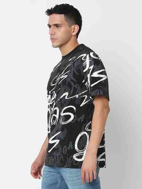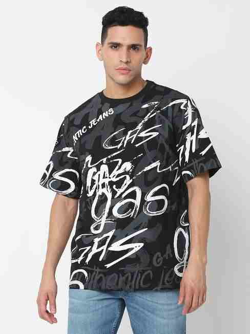 Boxy Fit All Over Printed Round Neck T-Shirt with Short Sleeve