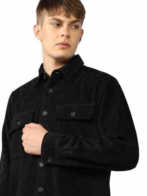 Corduroy Shacket Fit Shirt with Double Flap Pockets
