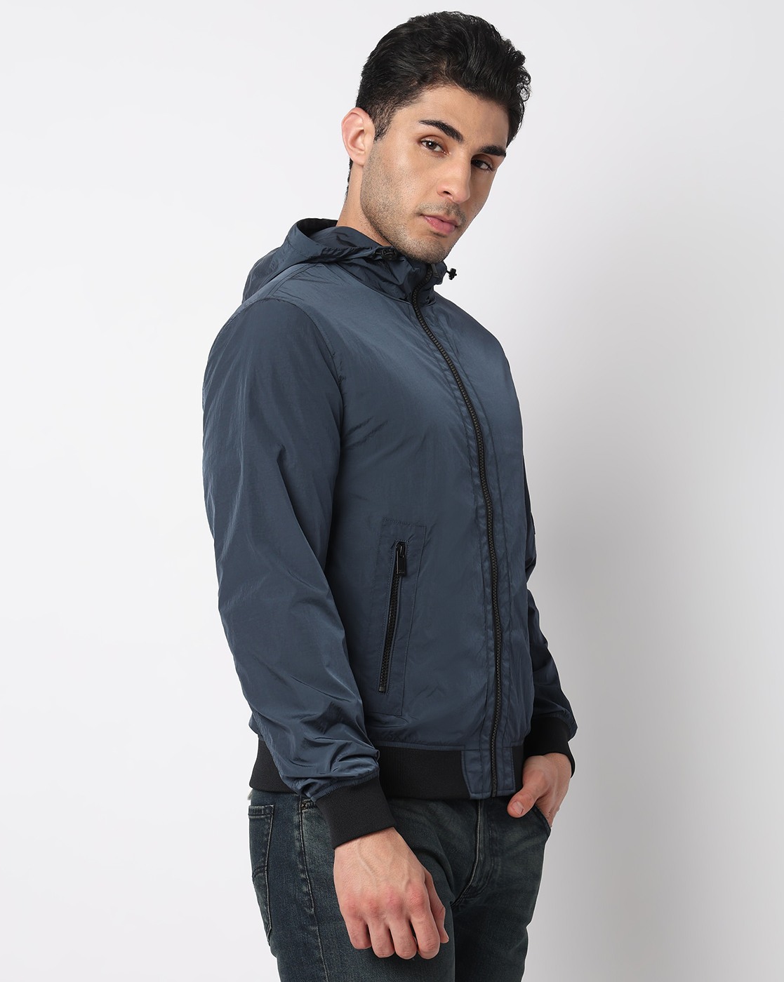 Crinckled Nylon Bomber Jacket with Signature Branding
