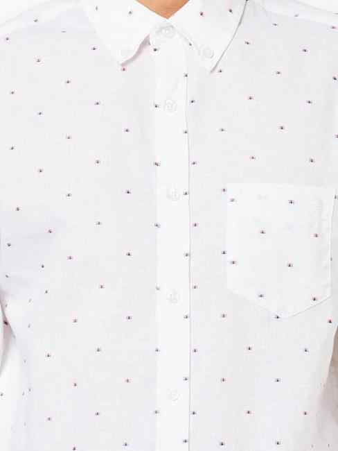 Micro Print Slim Fit Cotton Shirt with Patch Pocket