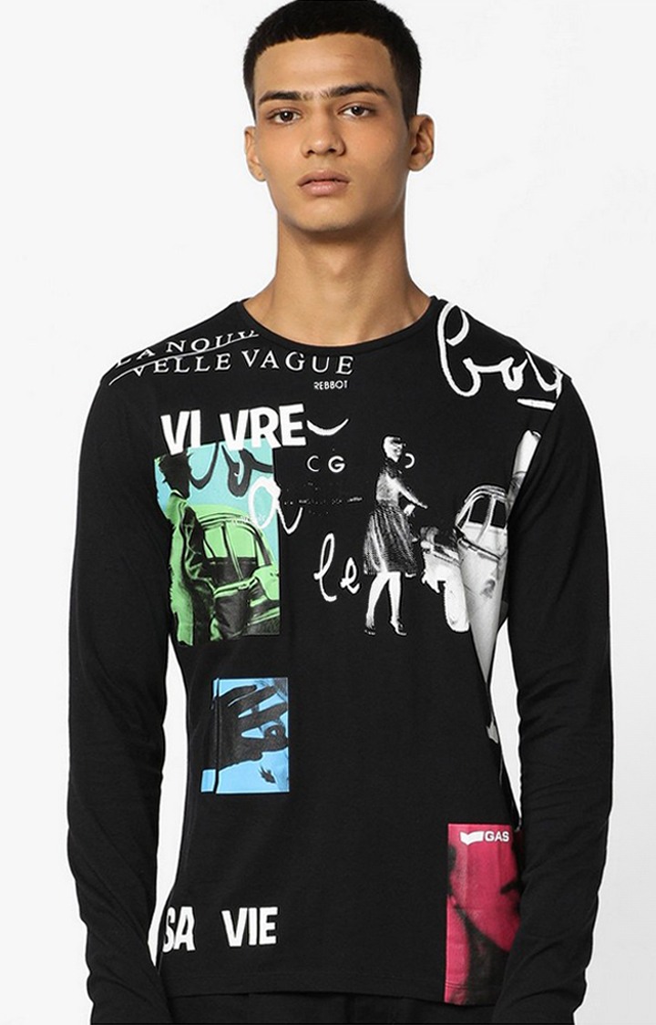 Janis/S Printed Crew Neck Black T-Shirt has been added to your wishlist.