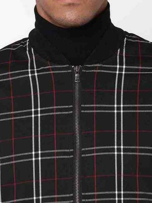 Checked Slim Fit Zip-Front Jacket