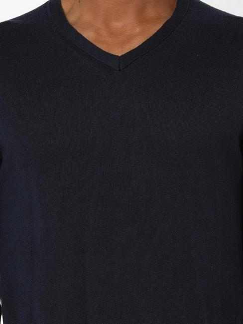 Men's Jonnye solid V neck navy blue pullover