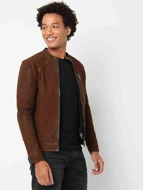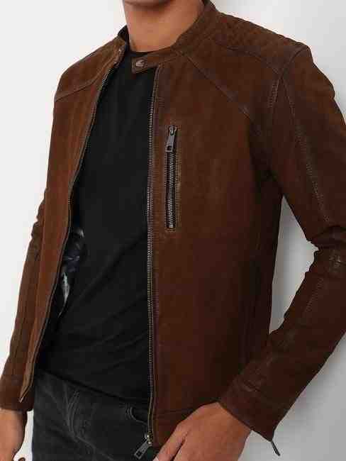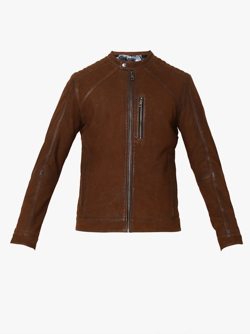 Regular Fit Full Sleeve Mandarin Collar Solid Leather Jacket has been added to your wishlist.