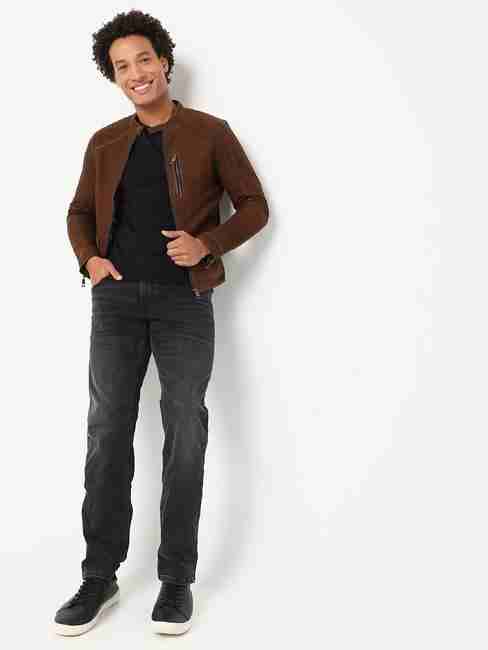 Regular Fit Full Sleeve Mandarin Collar Solid Leather Jacket