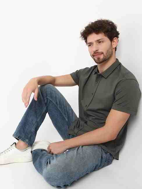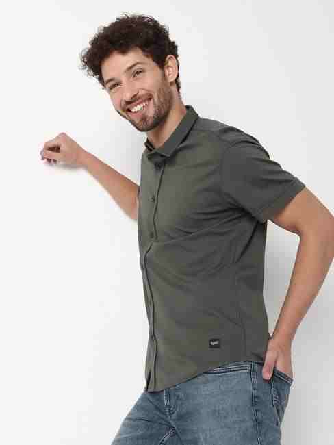 Slim Fit Half Sleeve Solid Scuba Shirts