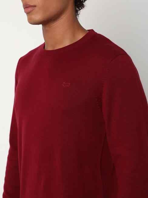 Regular Fit Full Sleeve Rib Neck Solid Cotton Sweater