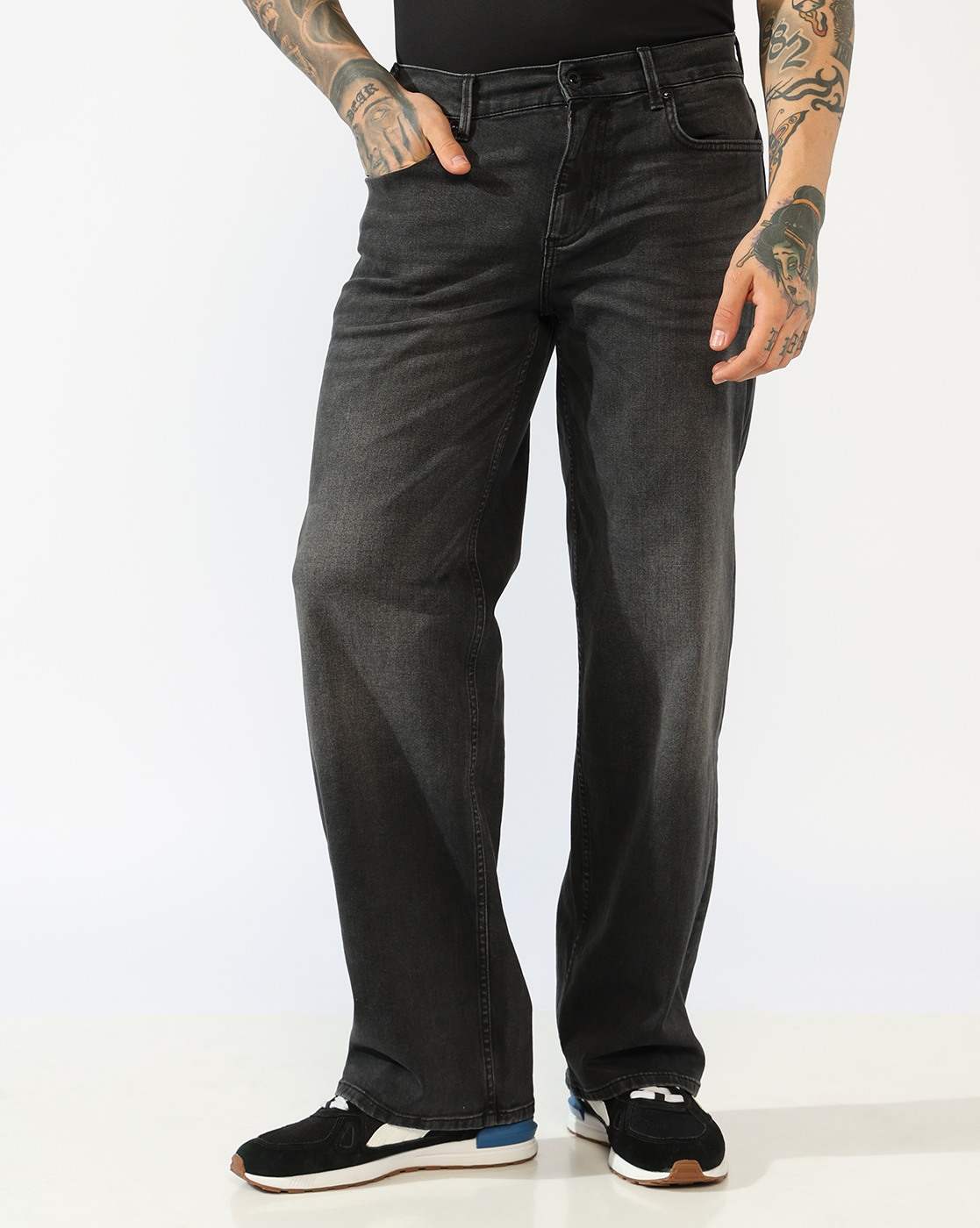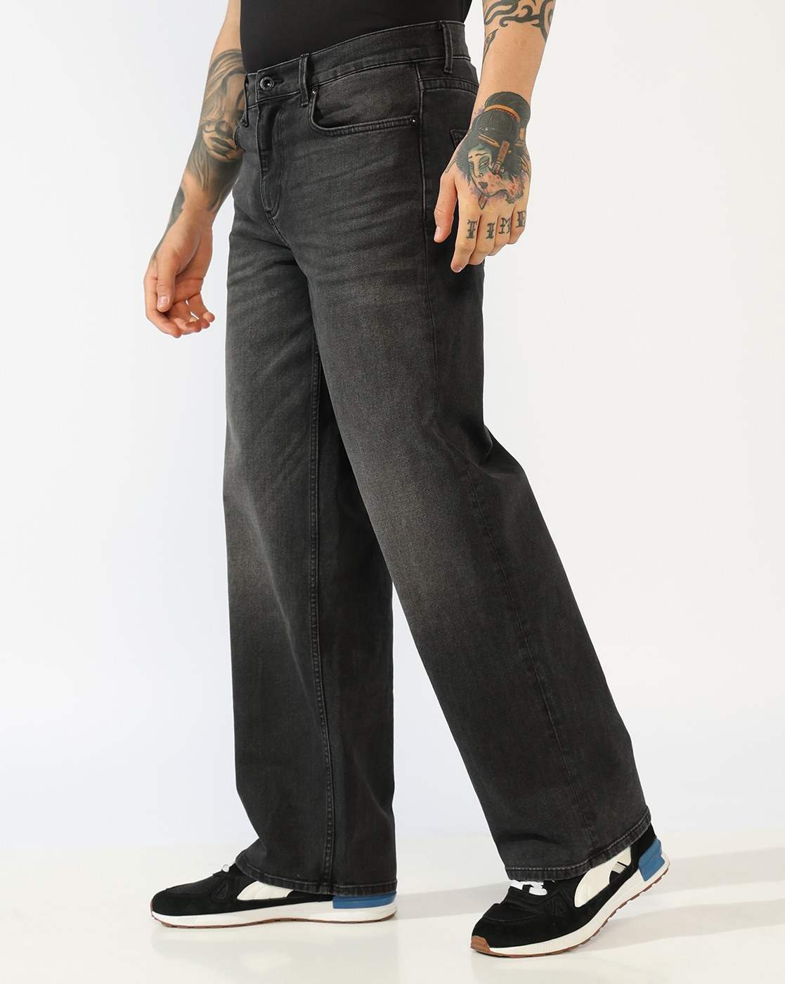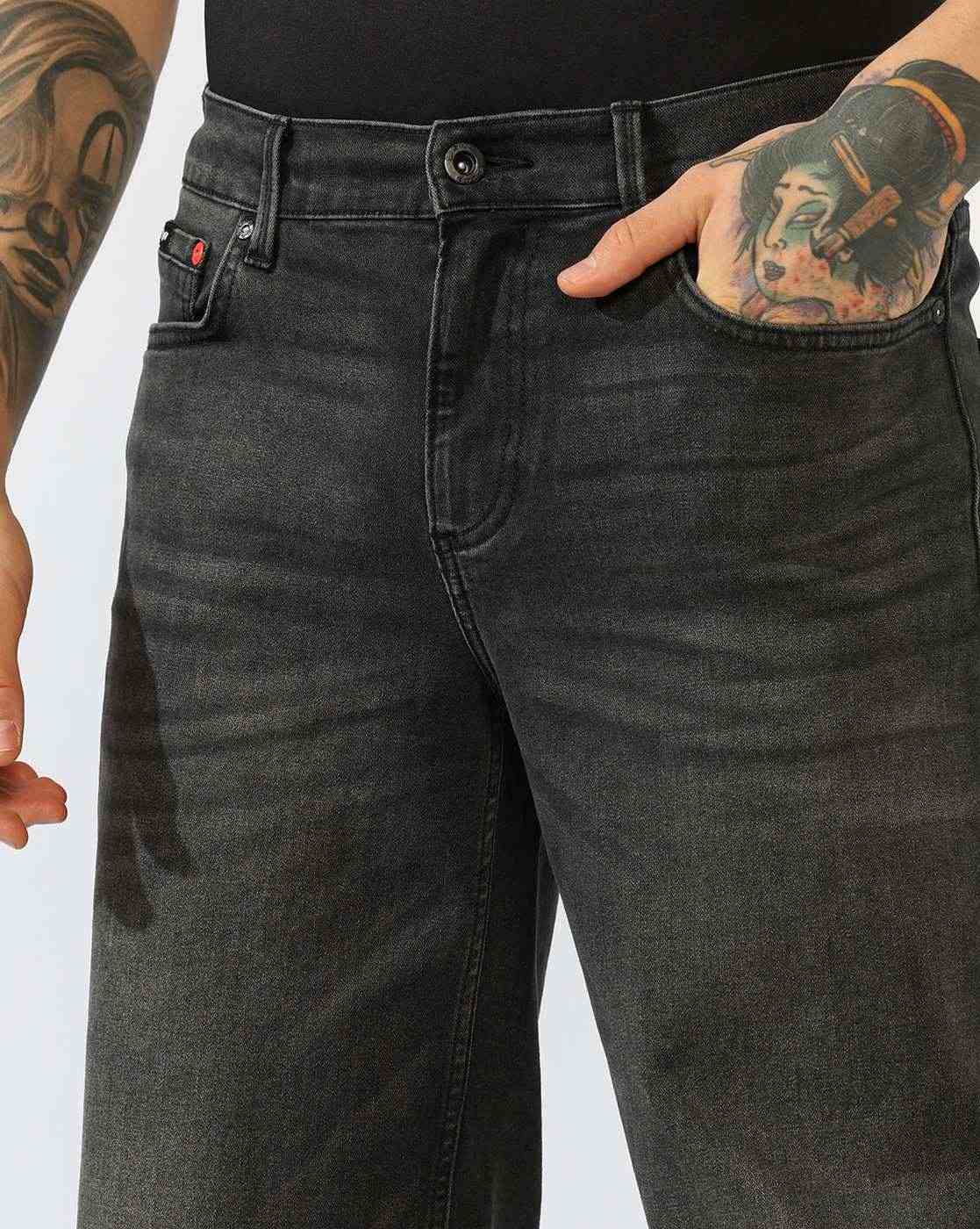 Men's Mid-Rise Flared Black Faded Jeans has been added to your wishlist.