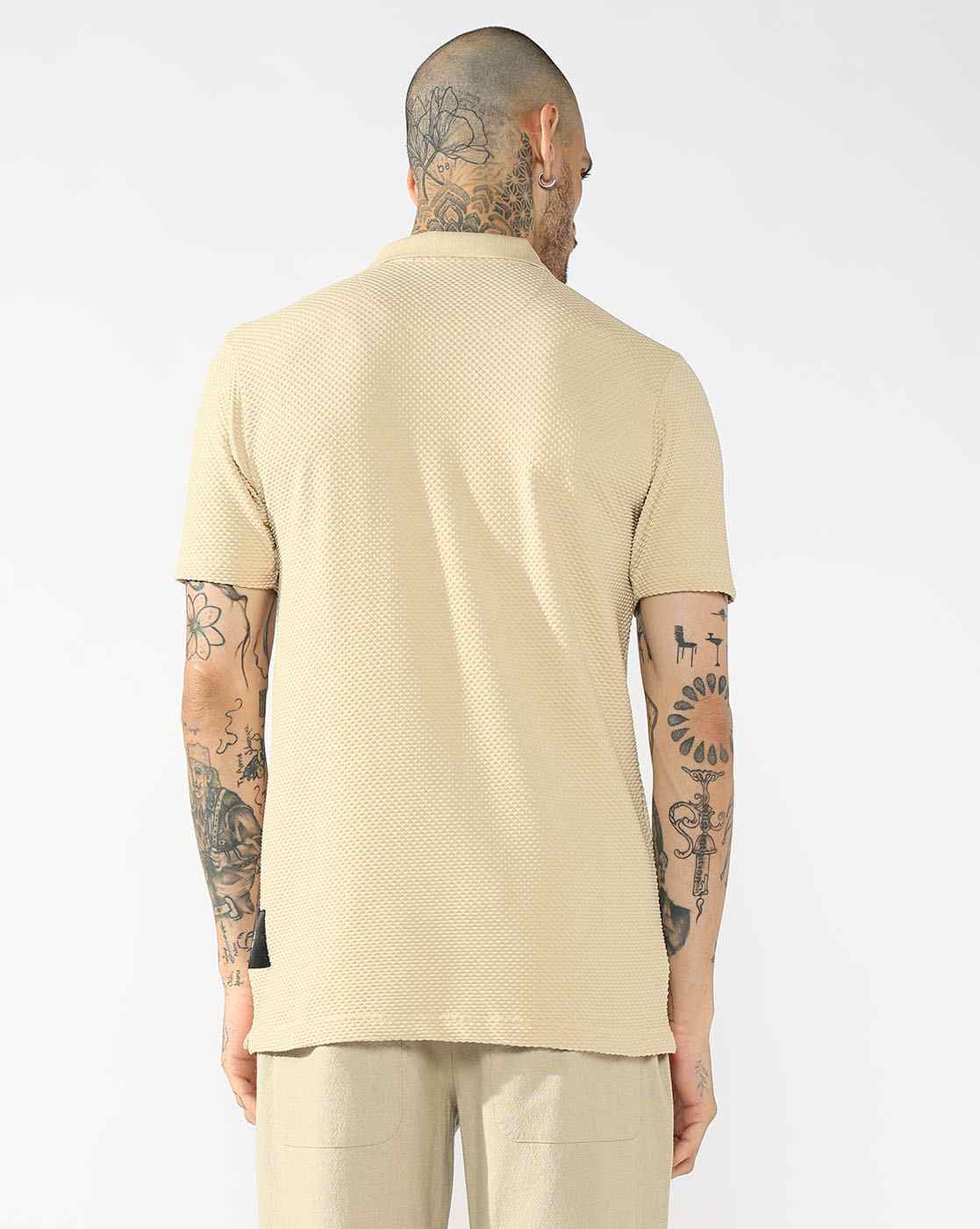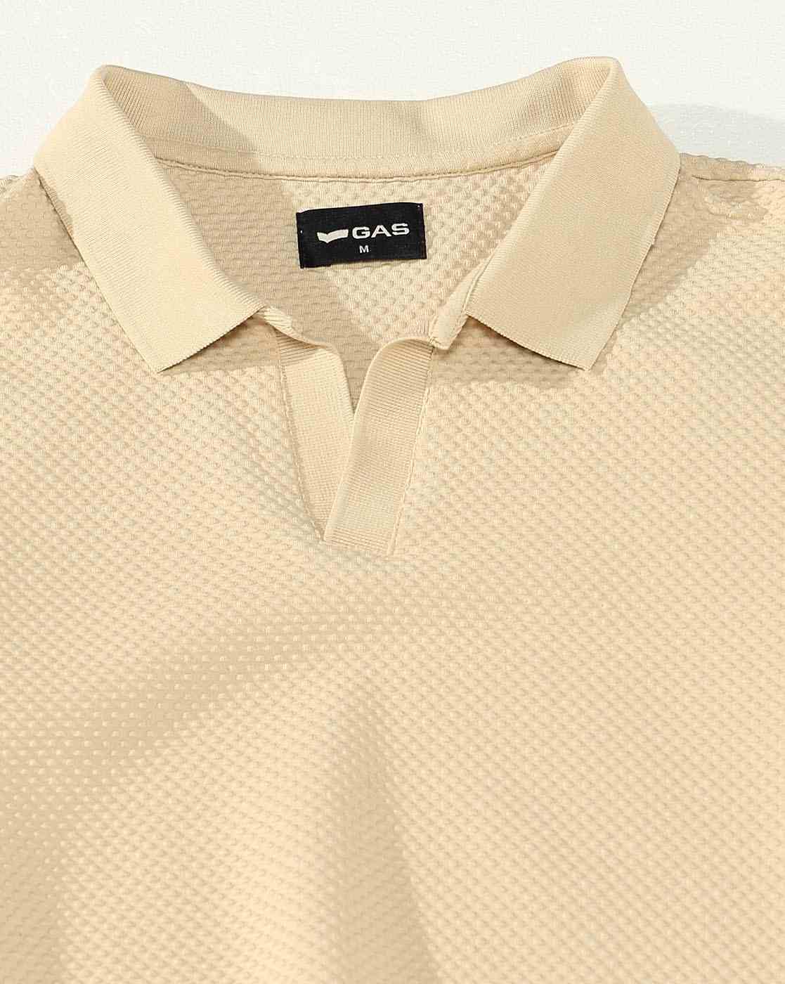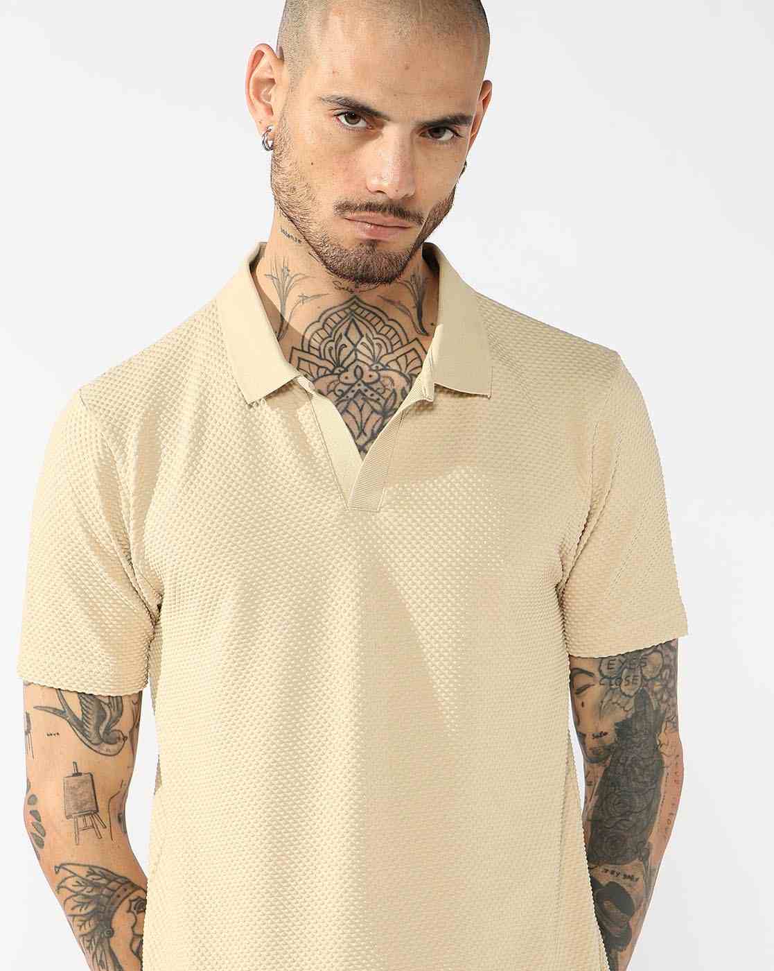 Men's V-Neck Polo T-Shirt with Texture & Contrast Collar