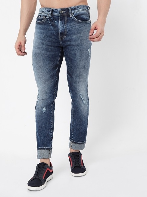 Albert Mid-Wash Slim Fit Jeans with Distressing