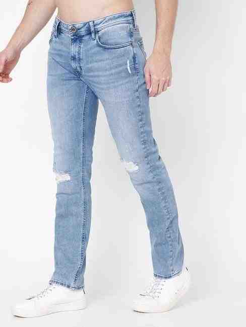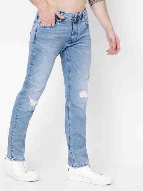 Albert Simple Washed Distressed Slim Fit Jeans