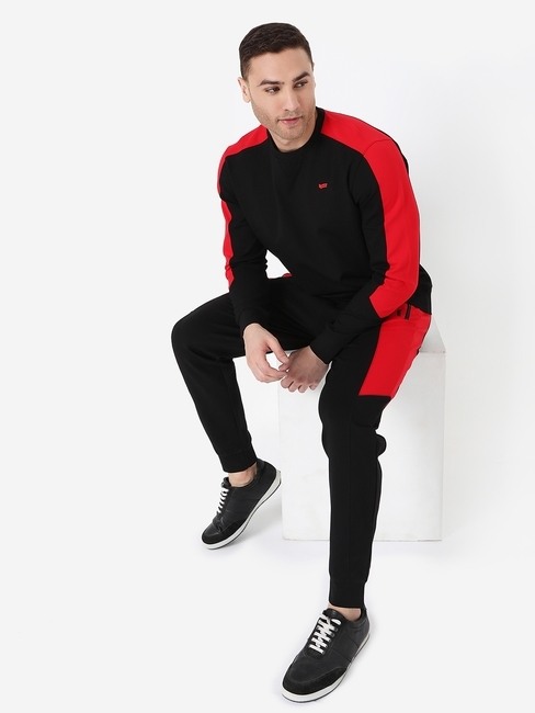 Slim Fit Crew-Neck Sweatshirt with Contrast Panel