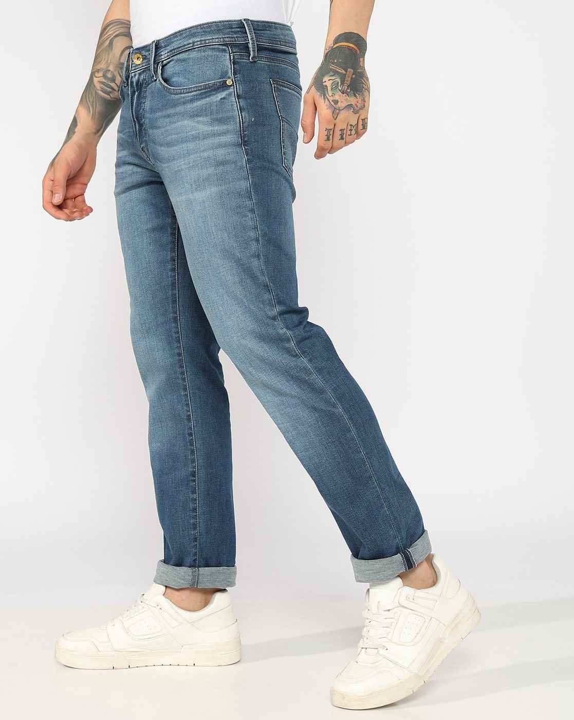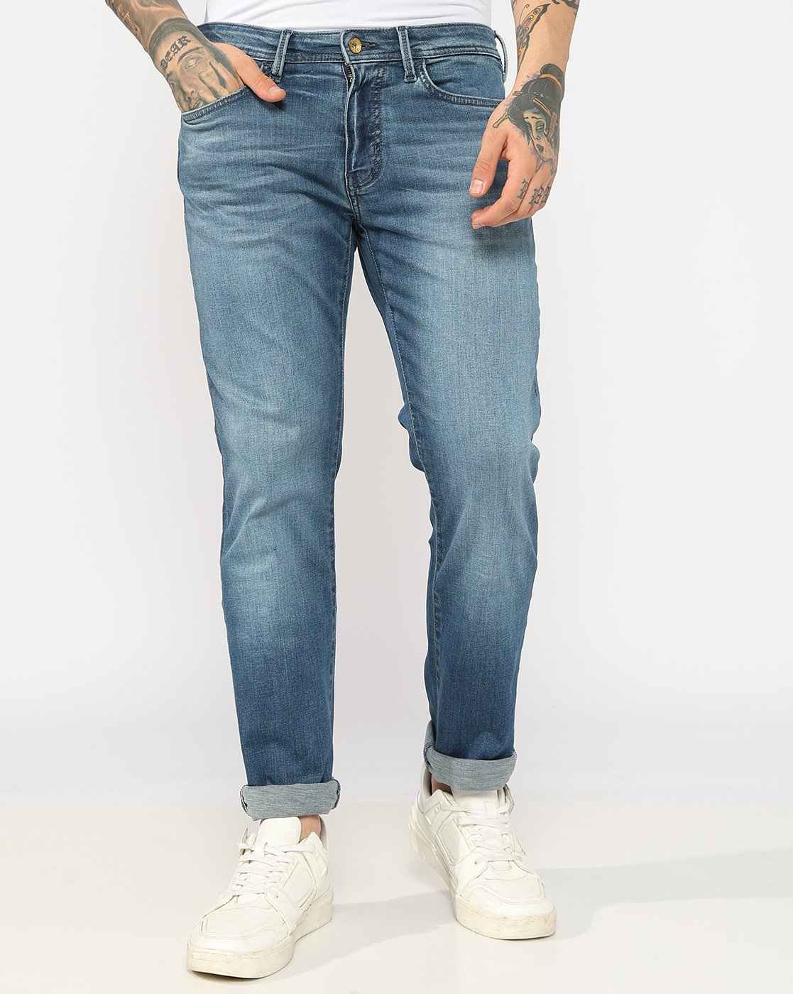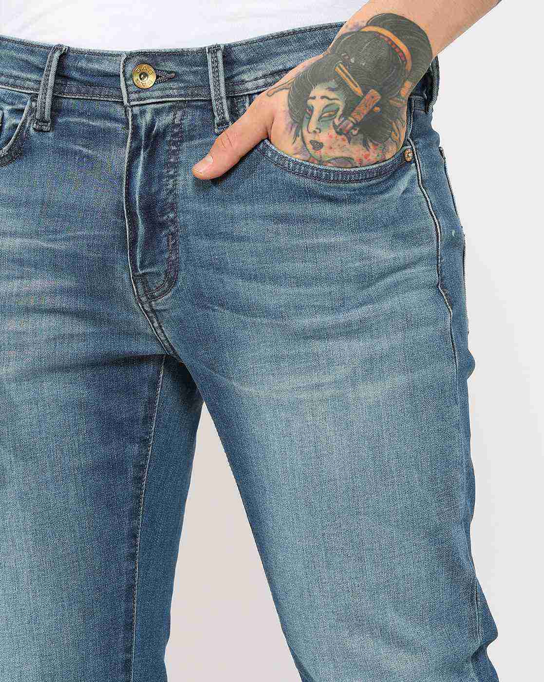 Mid Rise Mid Wash Slim Straight Fit Denim