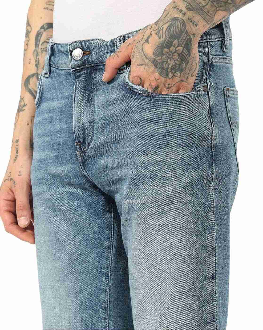 Mid Rise Stone Medium Wash Denim Shorts