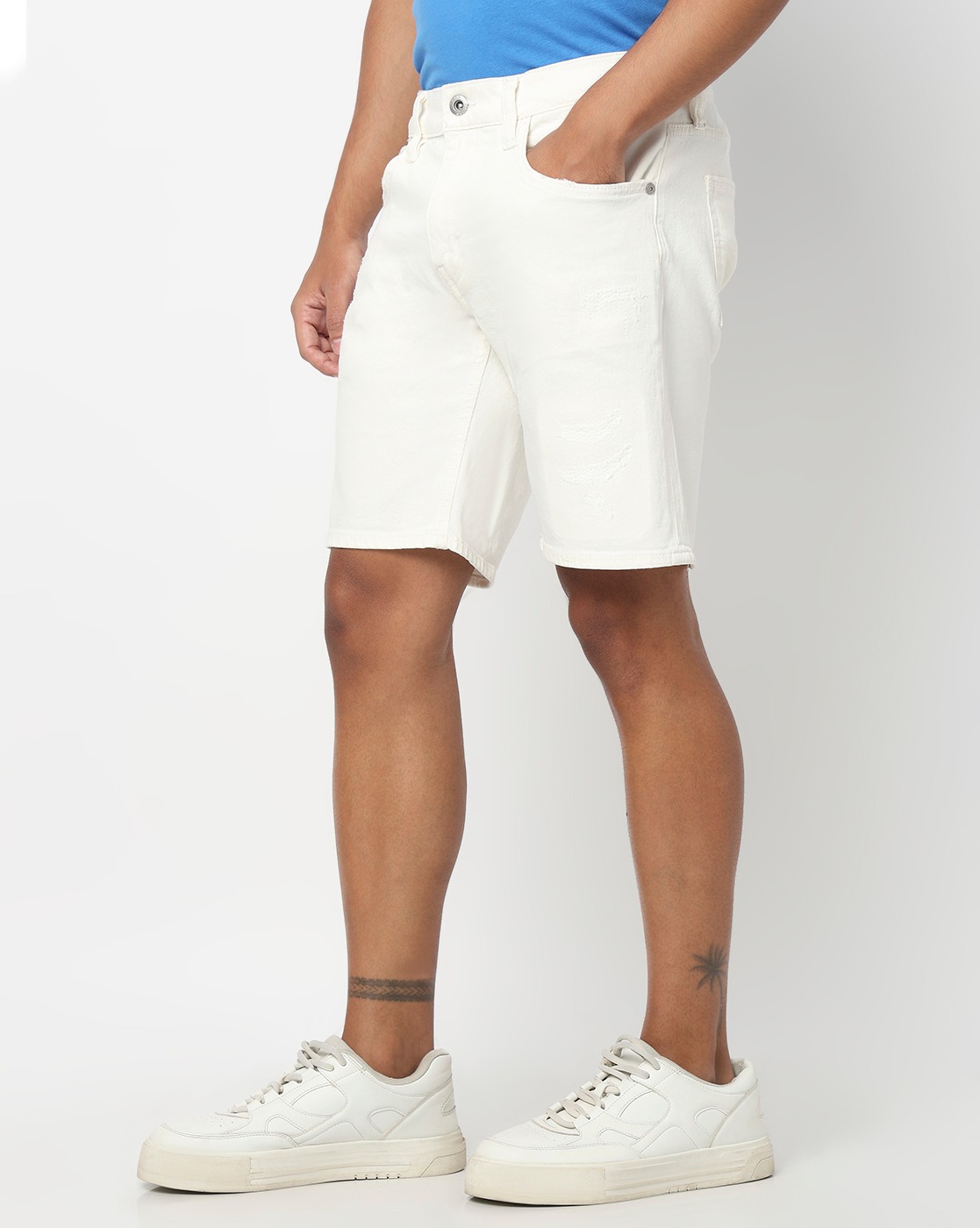 Normcore Stylised Jaxon Distress White Straight Fit Shorts has been added to your wishlist.