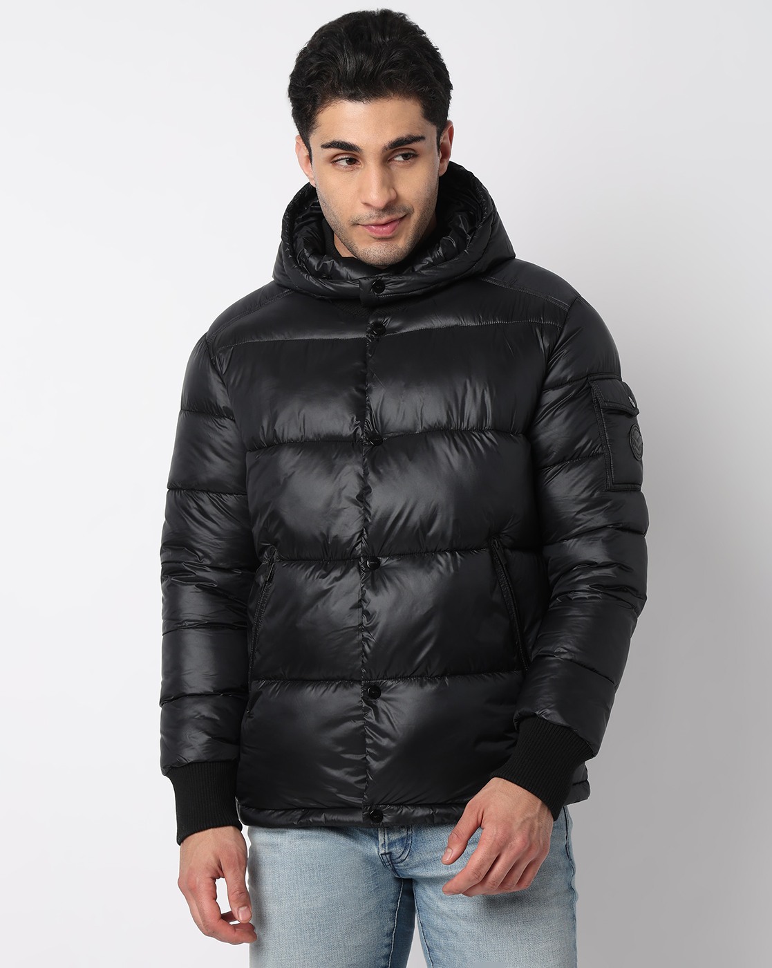 Regular Fit Bomber Puffer Jacket with Signature Branding has been added to your wishlist.