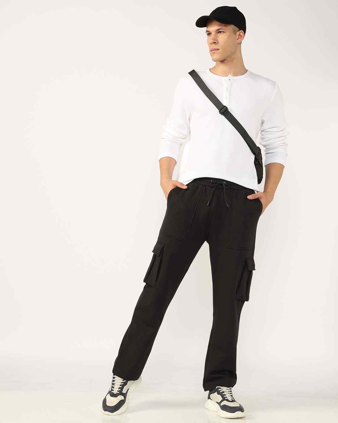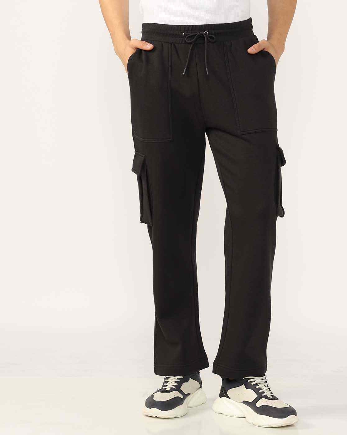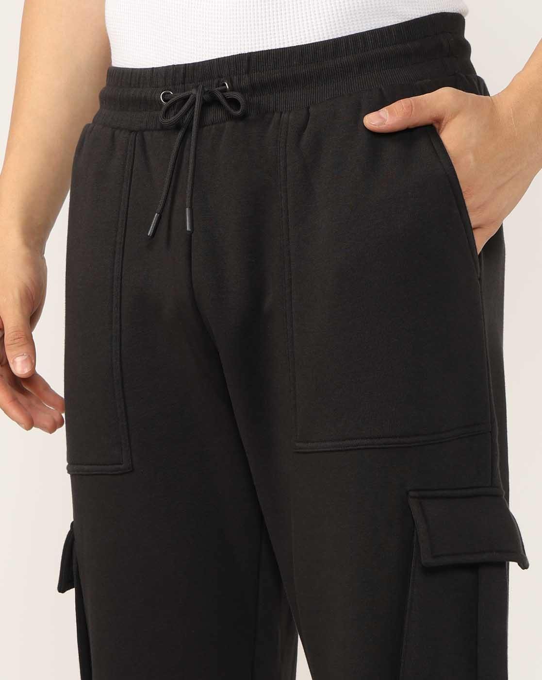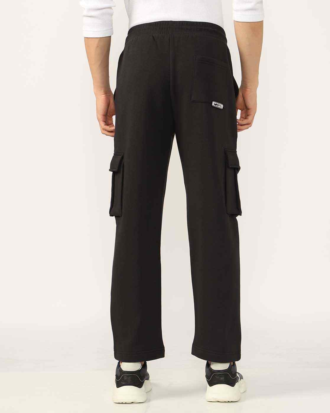 Regular Fit Cargo Pocket Black Track Pants