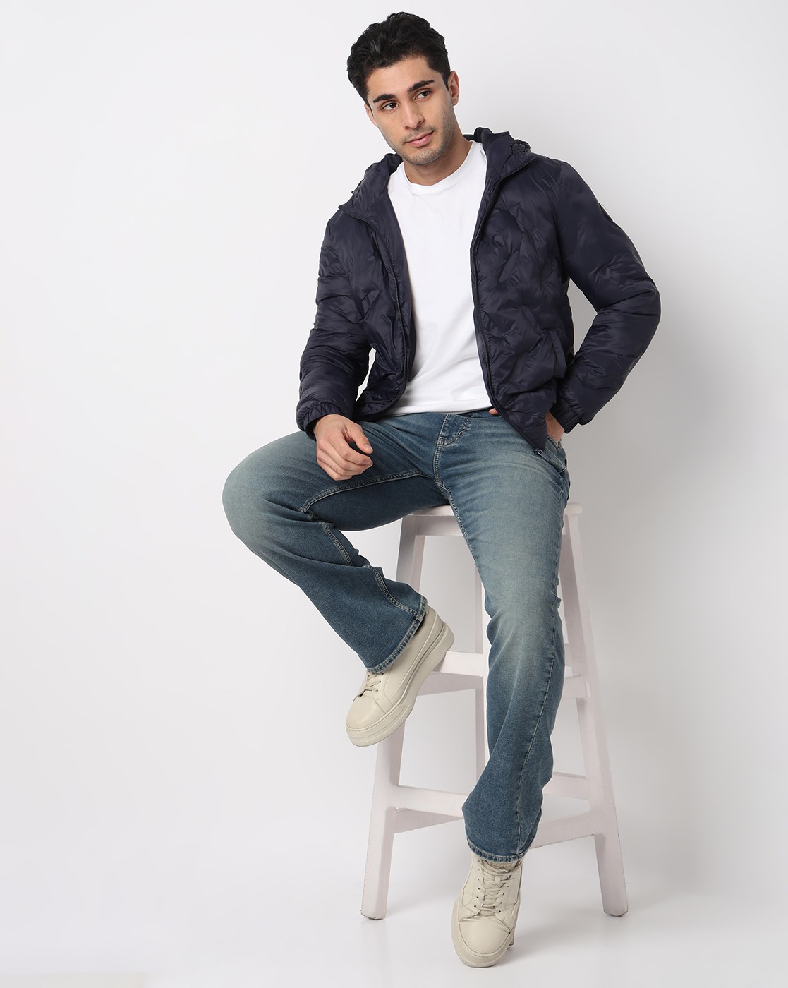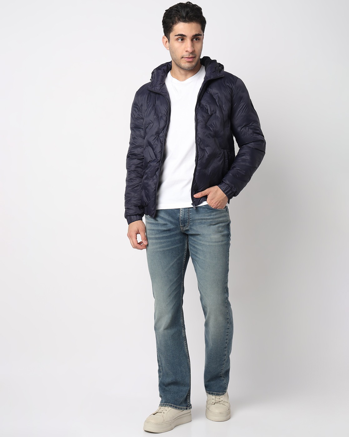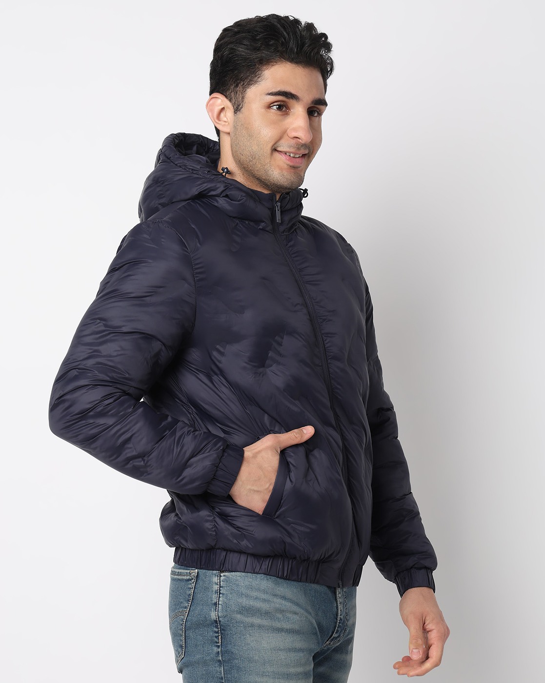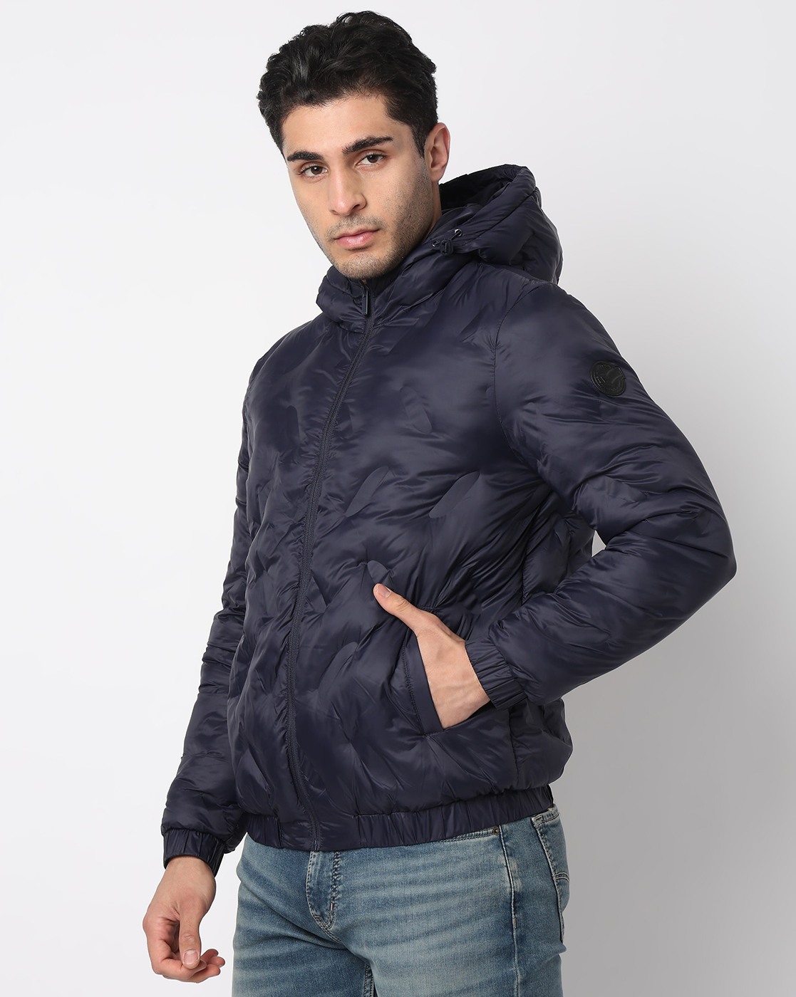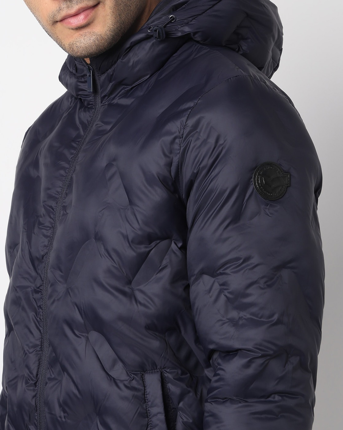 Regular Fit Hooded Padded Jacket with Signature Branding