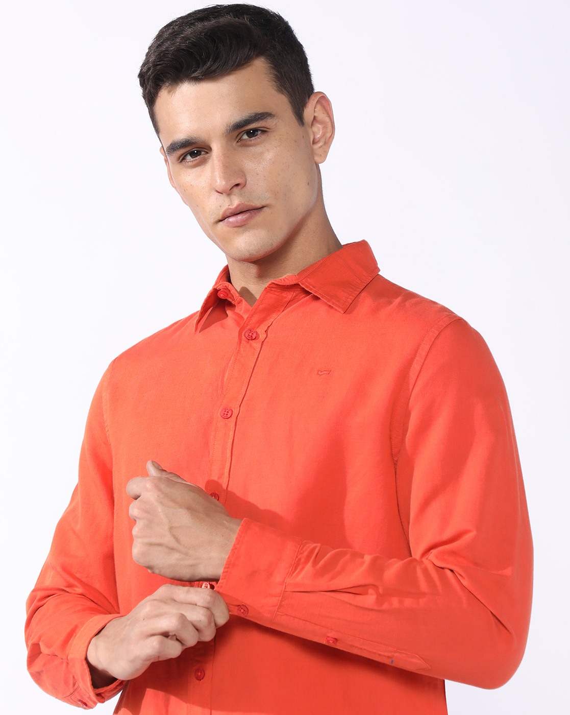 Regular Fit Linen Cotton Shirt with Signature Branding