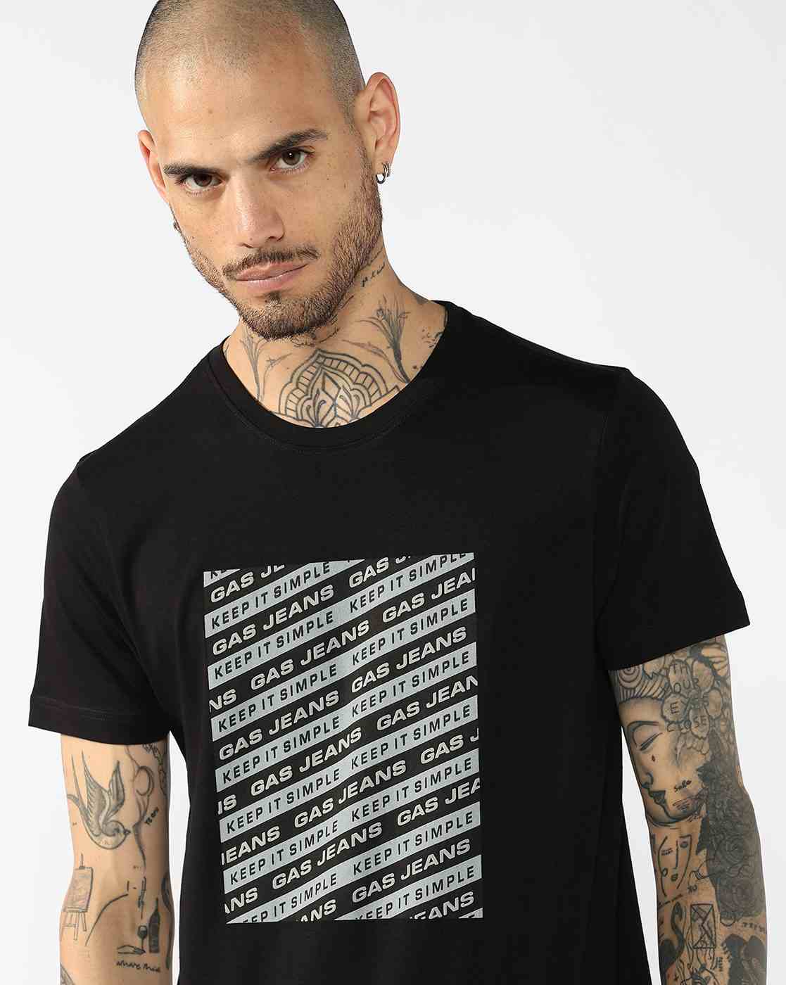Regular Fit T-Shirt With Abstract Text Block Print