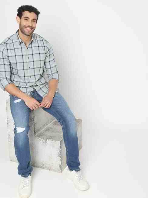 Checked Slim Fit Shirt with Patch Pocket