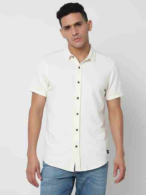 Slim Fit Solid Short Sleeve Shirt with Classic Collar