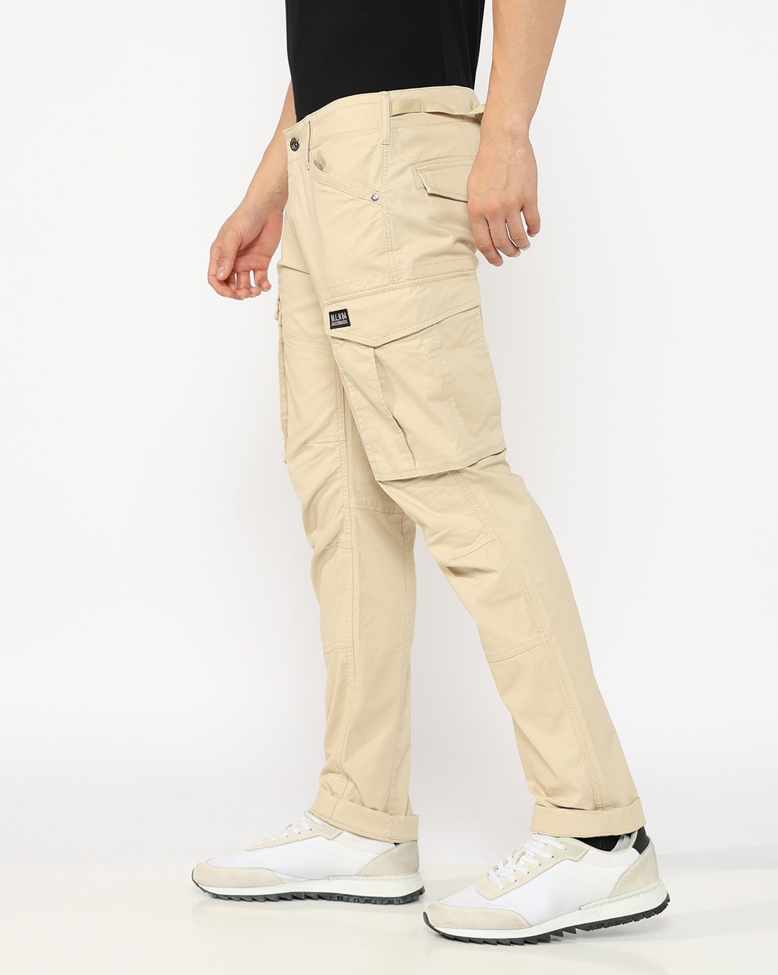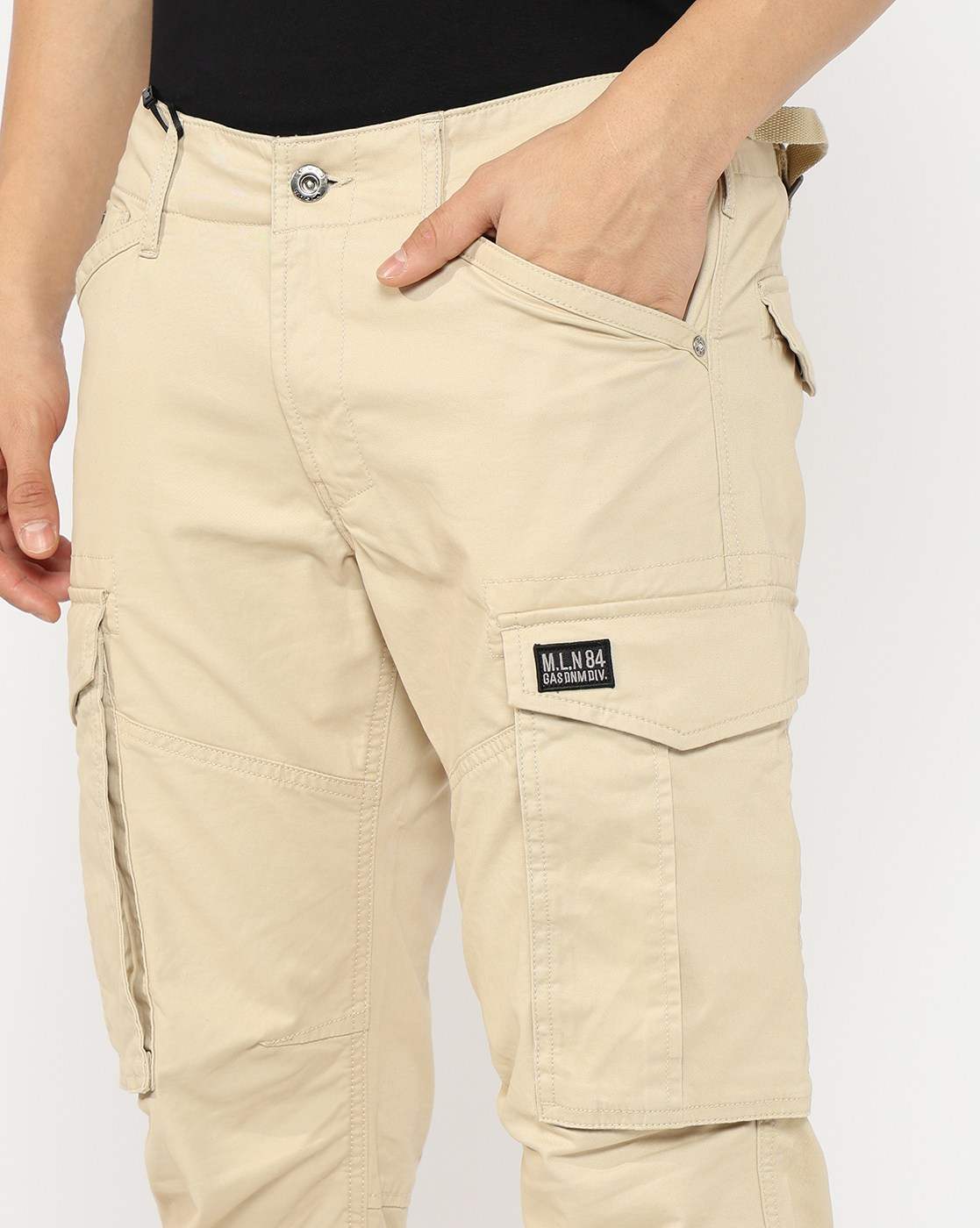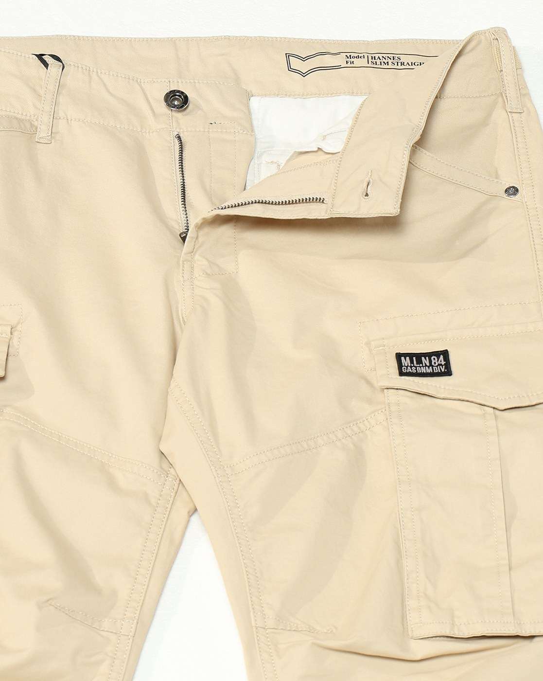 Slim Straight Fit Mid Rise Beige Cargo Trousers