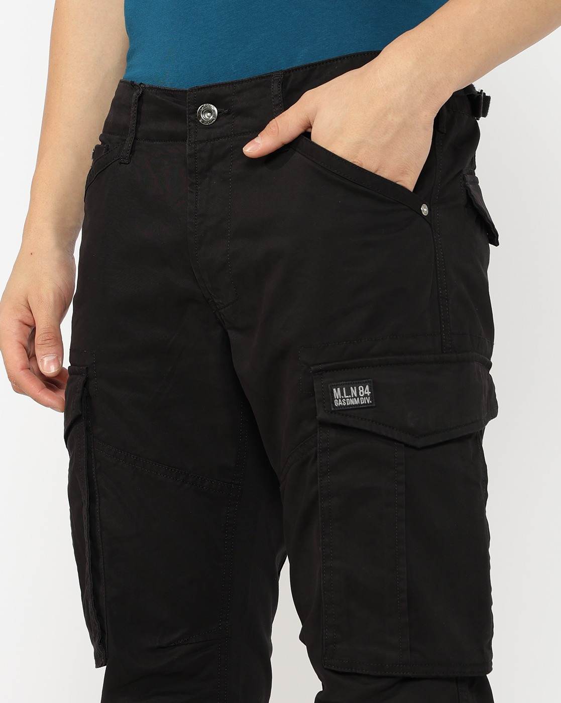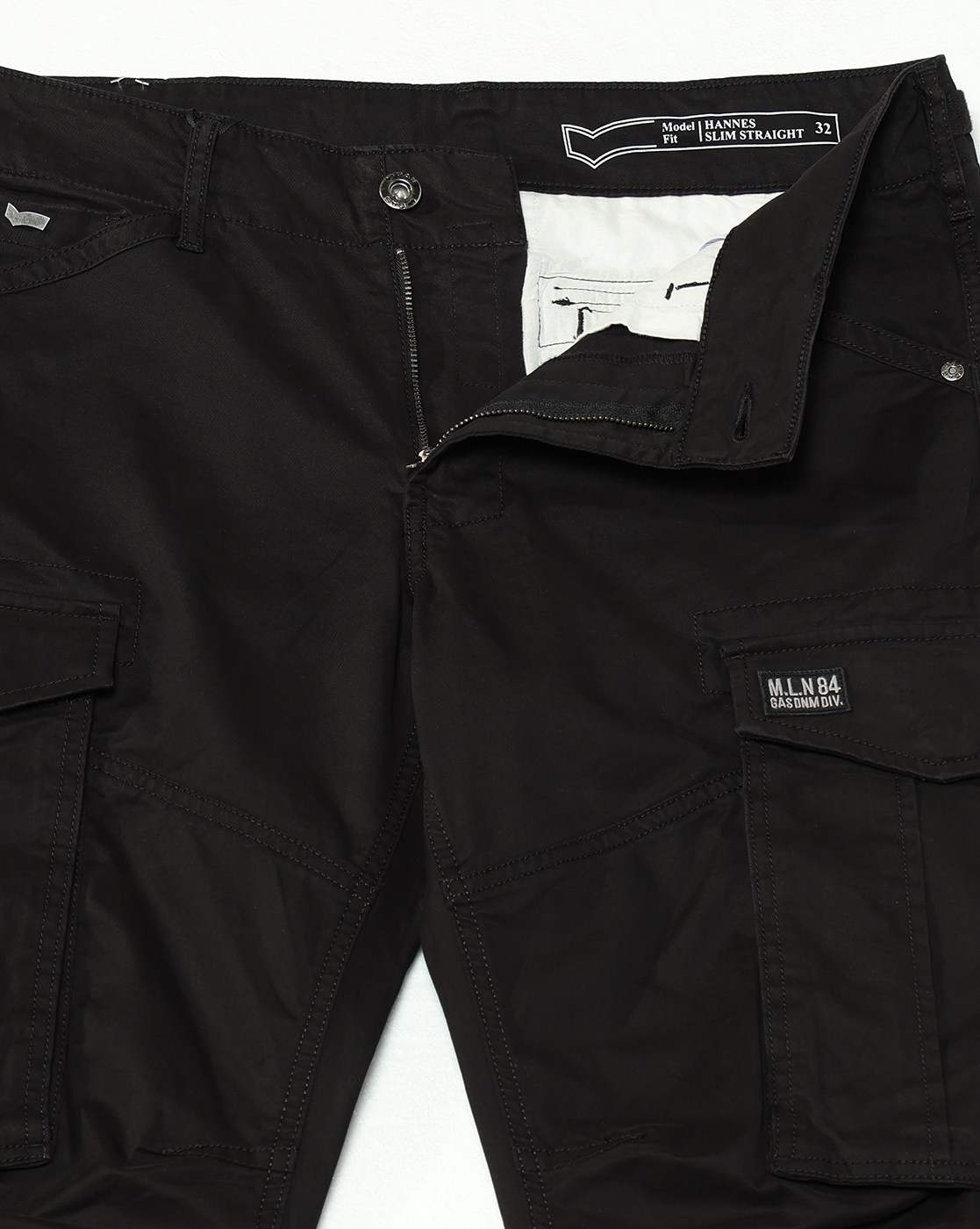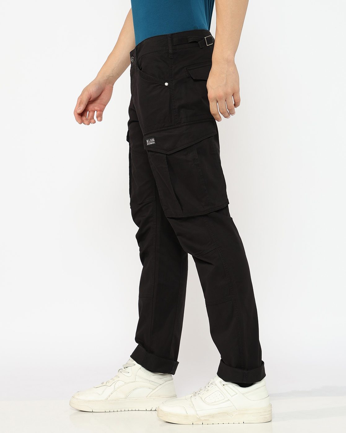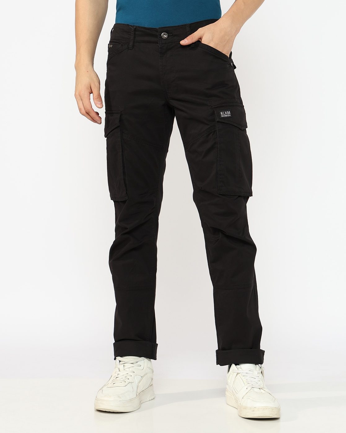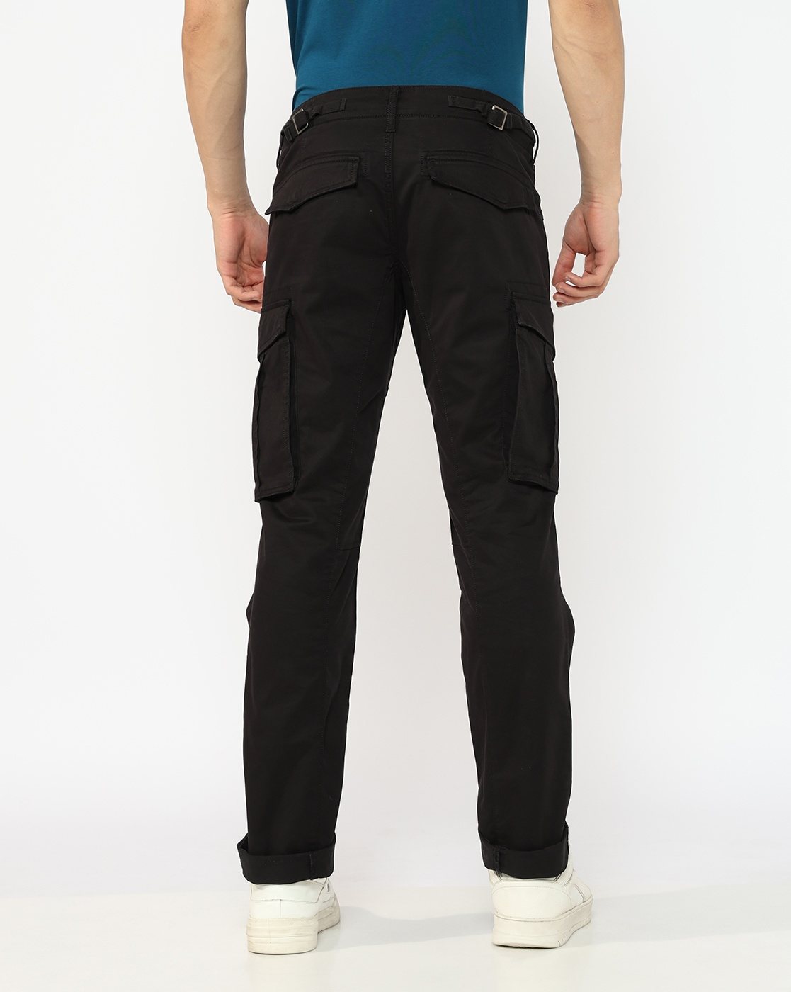 Slim Straight Fit Mid Rise Black Cargo Trousers
