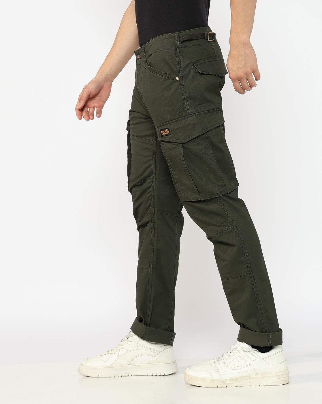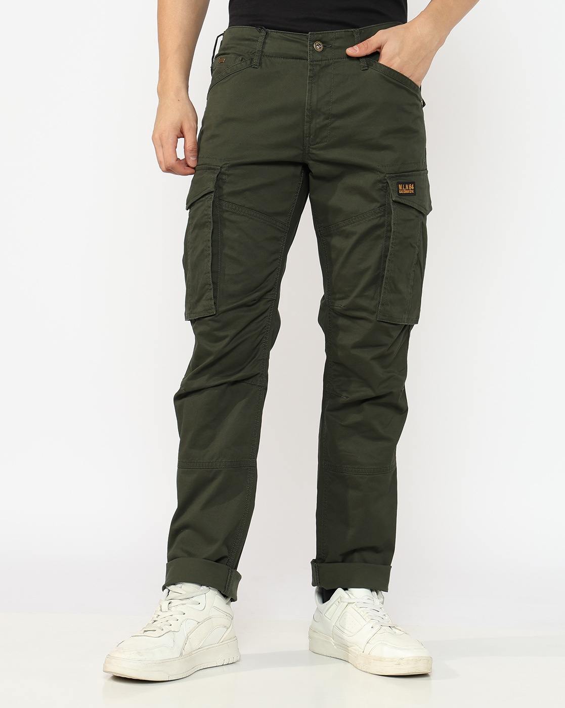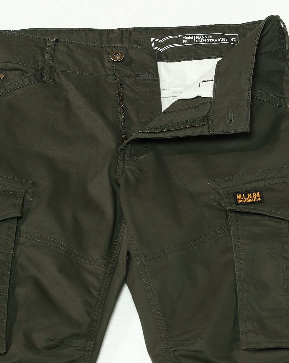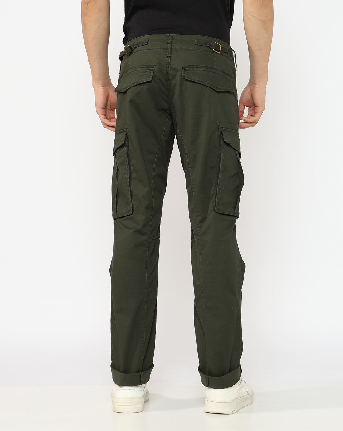 Slim Straight Fit Mid Rise Green Cargo Trousers