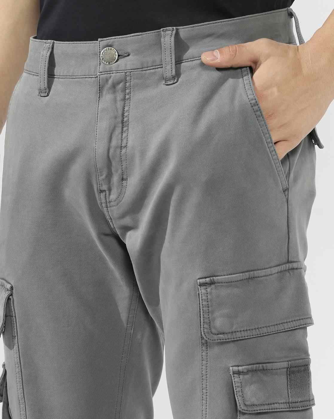 Straight Fit Mid Rise Grey Cargo Trousers has been added to your wishlist.