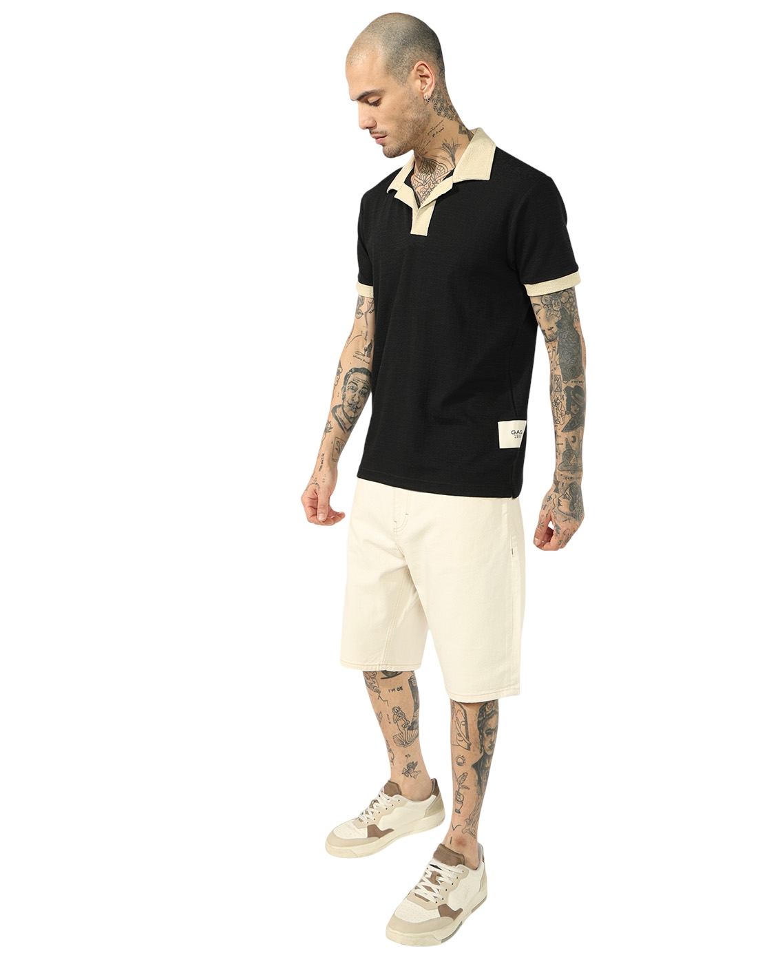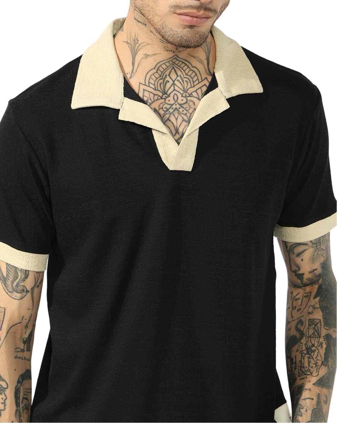 Textured Fabric Colour Block Regular Fit Polo Tshirt