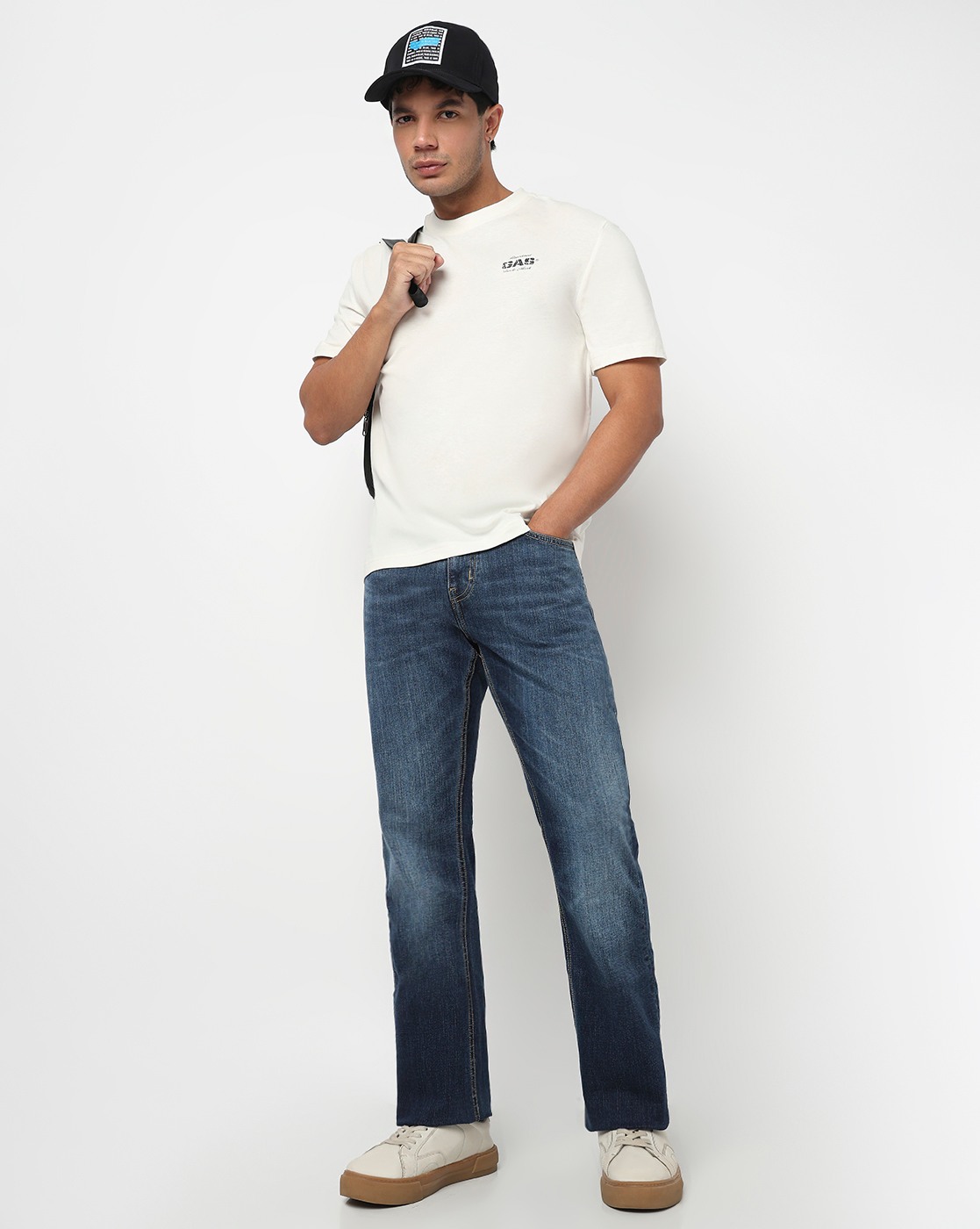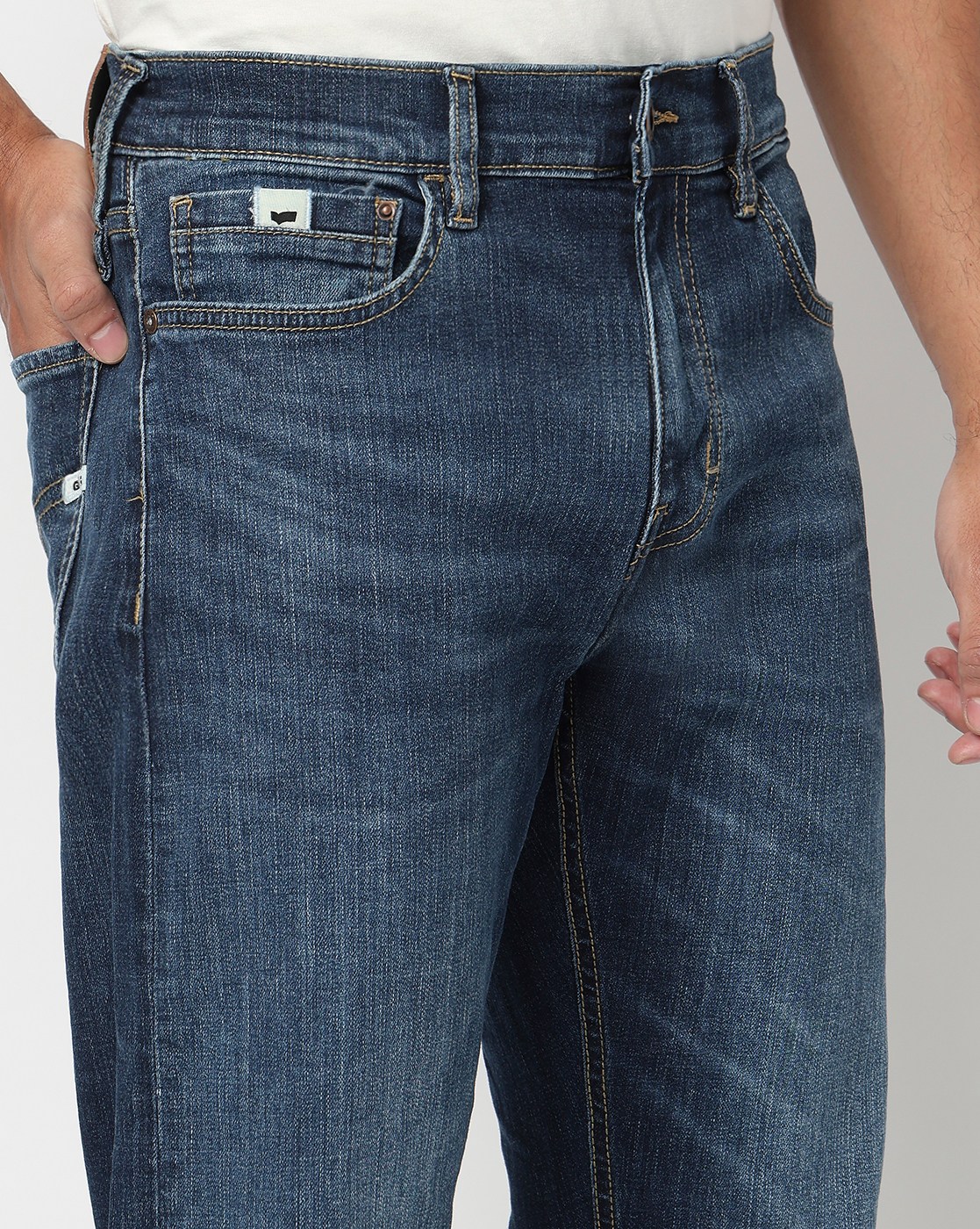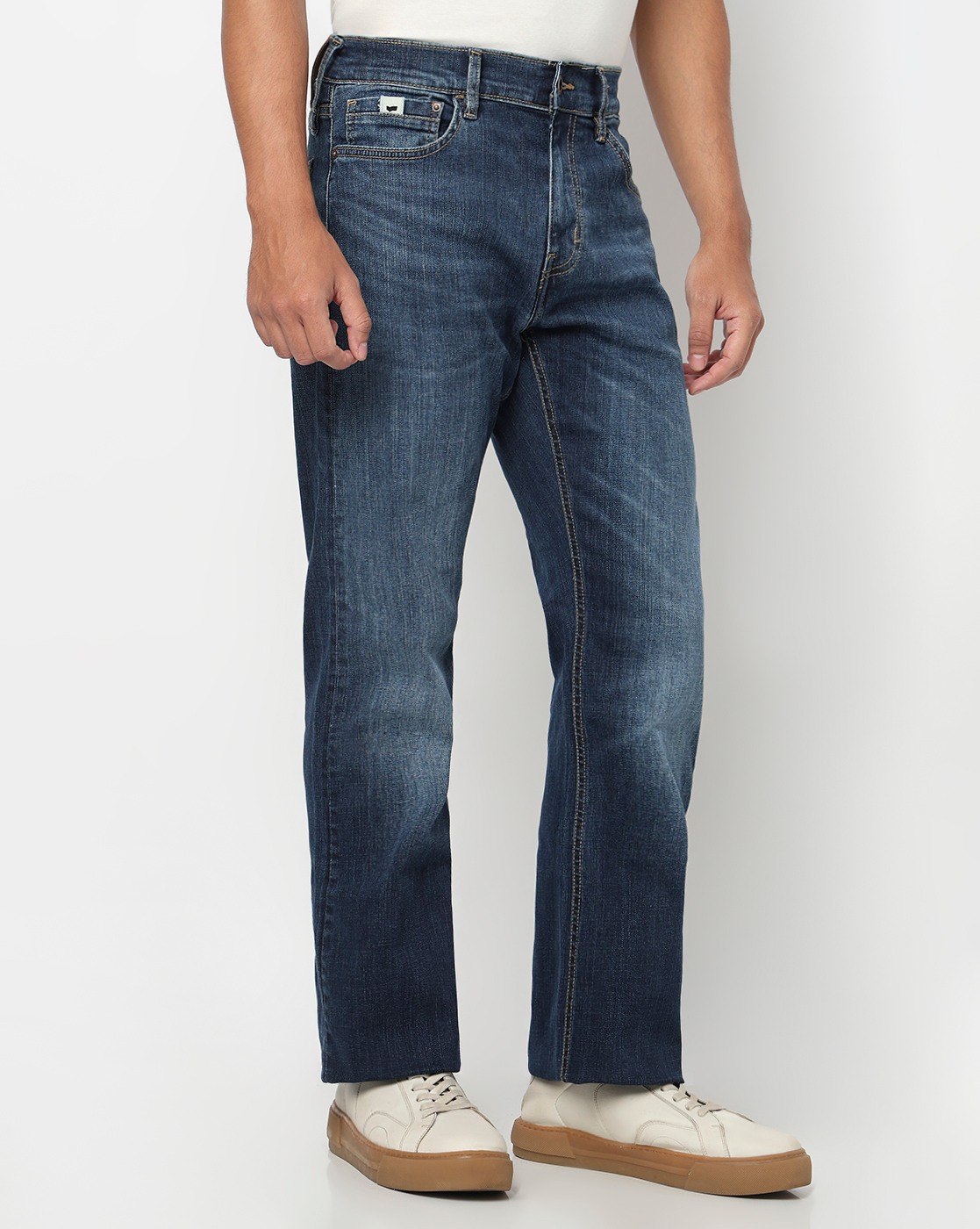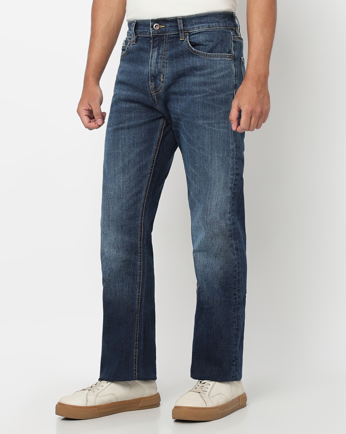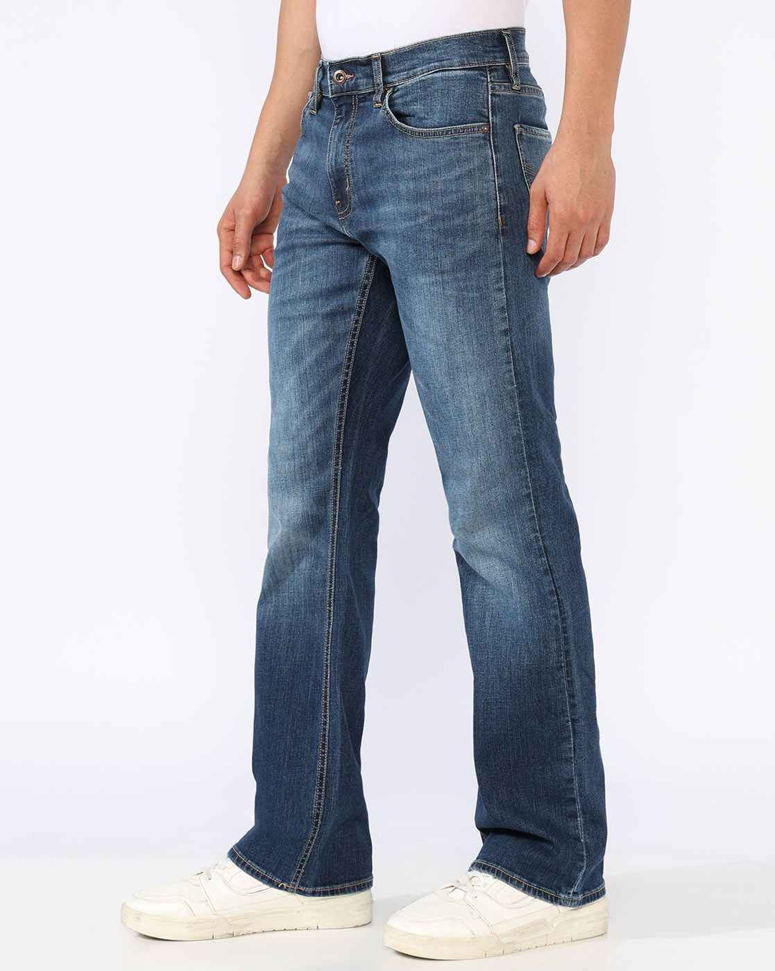 Noos Toki Bootcut Fit Mid Rise Light Wash Dark Blue Carpenter Trousers