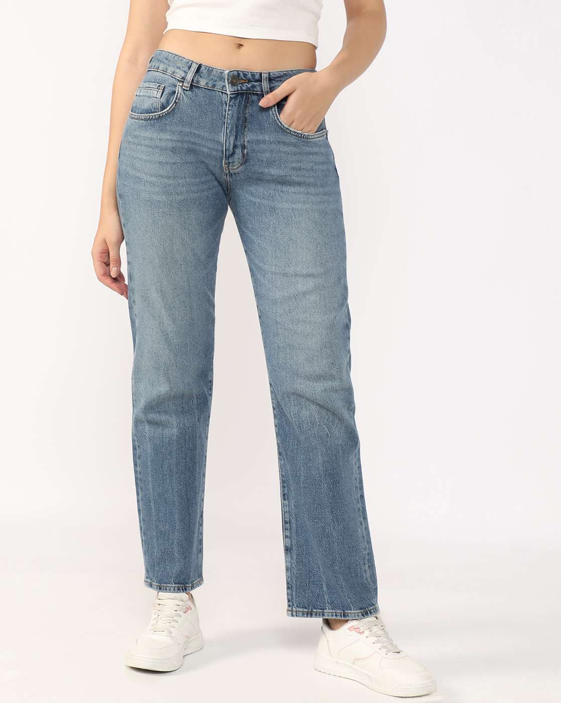 Women Straight Fit Mid Rise Blue Jeans has been added to your wishlist.
